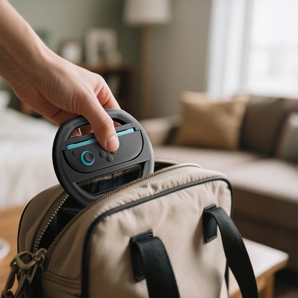 Bring the thrill of racing straight to your Nintendo Switch 2 with this 4-pack of steering wheel controllers. Enjoy precise control and immersive gameplay for you and your friends, making multiplayer races more exciting and fun. Easy to attach and lightweight, they let you jump into the action quickly and comfortably.