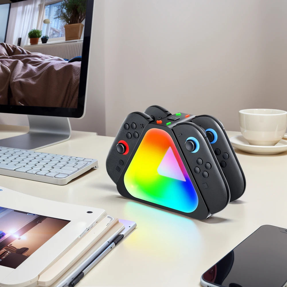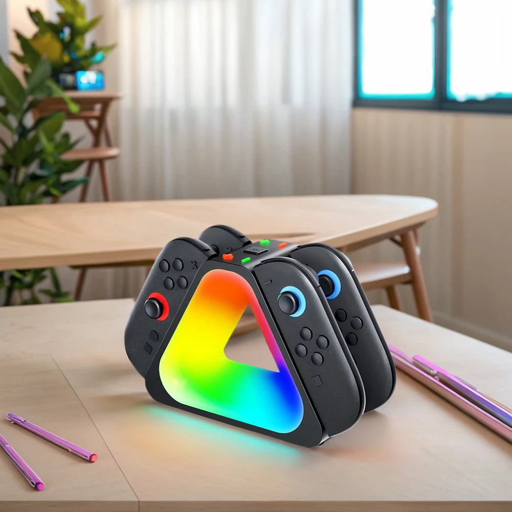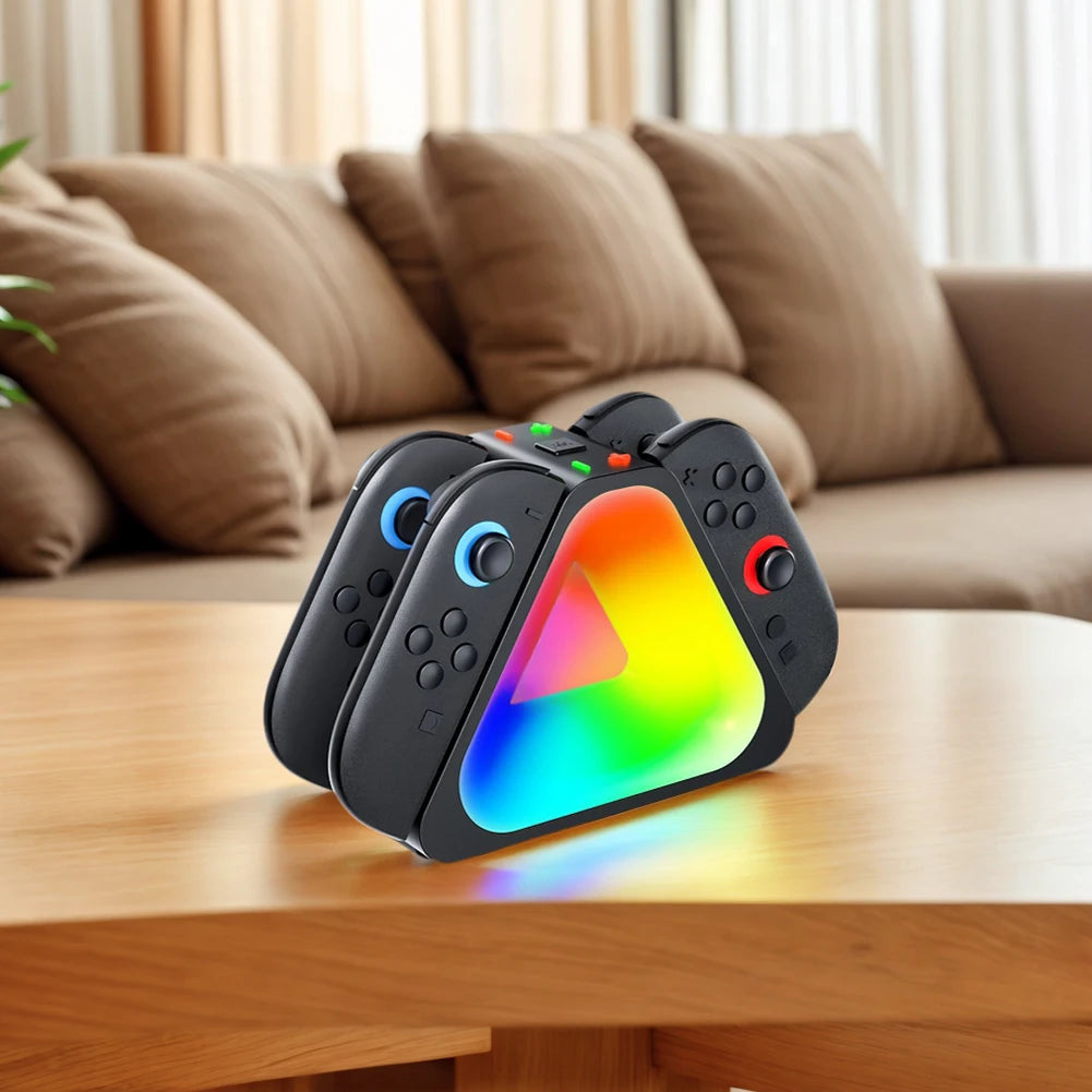 Keep your Nintendo Switch 2 Joy-Con controllers powered and ready with this 4-Port Magnetic Charging Dock. Its secure magnetic design ensures easy attachment and charging, while vibrant RGB lighting adds a stylish touch to your gaming setup. Charge up to four controllers simultaneously for uninterrupted gameplay and convenience.