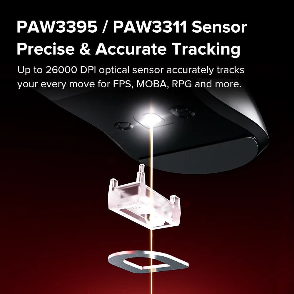 - Sensor: PAW3395 / Pixart 3395 (Optical)