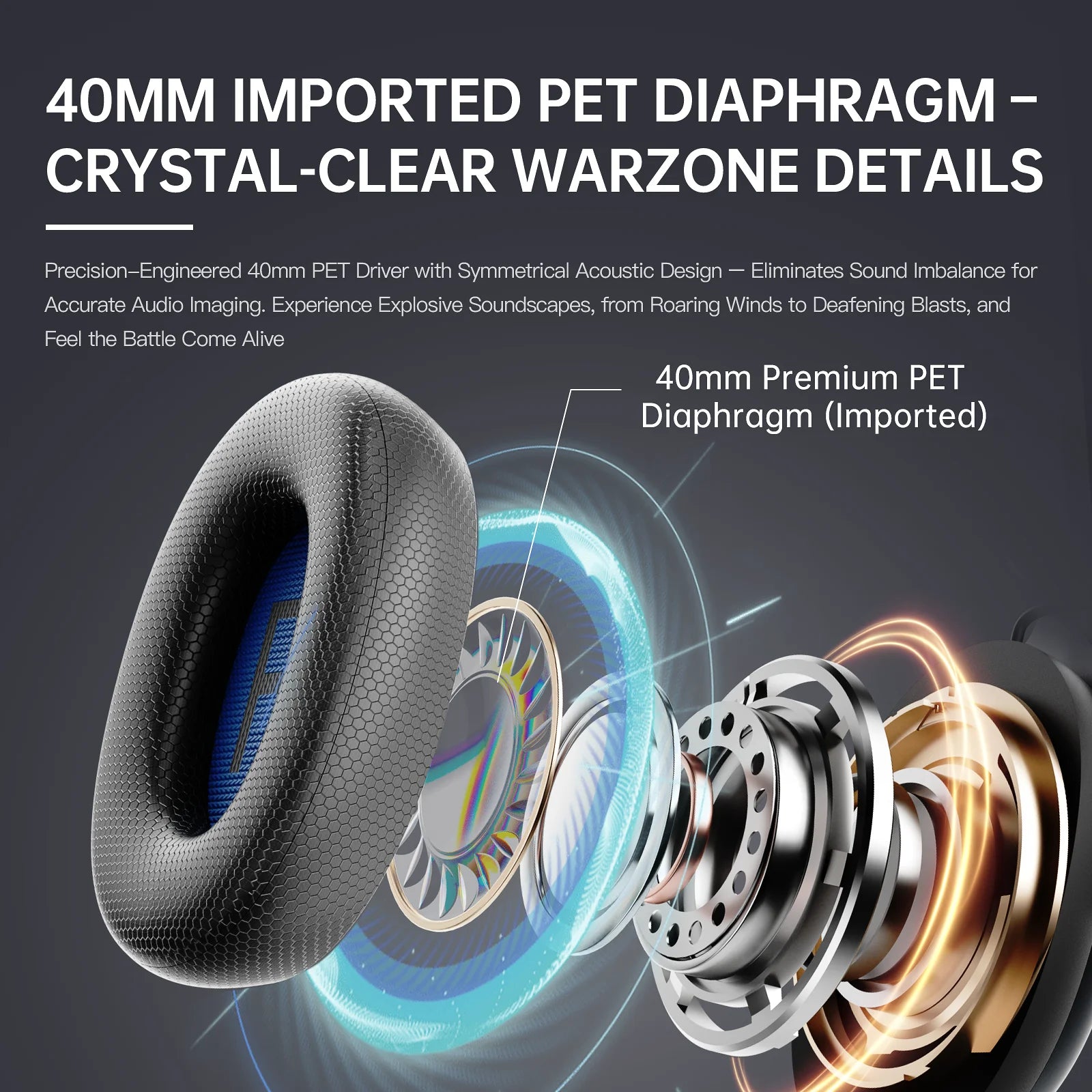 - Precision-engineered 40mm PET driver with symmetrical acoustic design