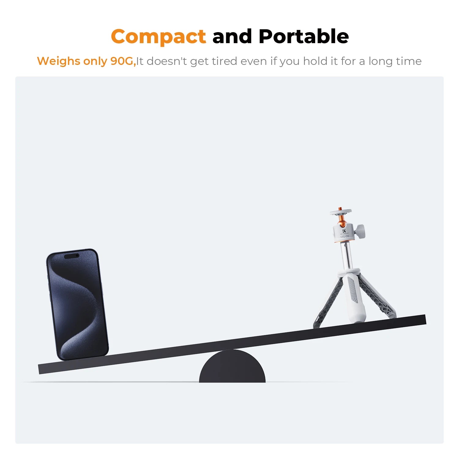 Compact yet sturdy, this tripod is built to handle up to 2 kg (4.4 lb) of equipment, ensuring support for most smartphones and compact cameras. It’s an essential companion for creators seeking convenience, stability, and creative flexibility on the go.