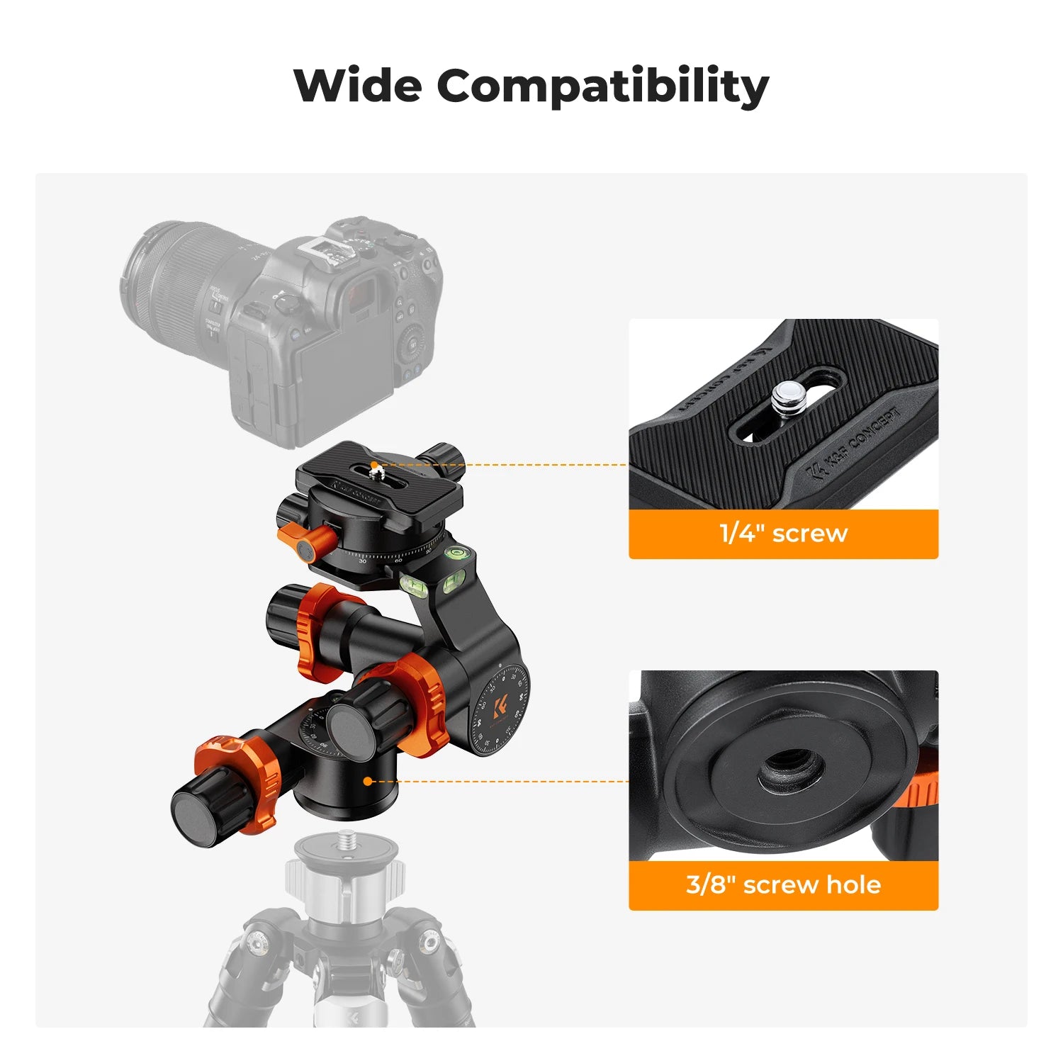 Achieve ultimate precision in your photography with the K&F Concept Geared 3-Way Tripod Head. Designed for professional photographers and enthusiasts, this tripod head provides fine micrometer adjustments, stable positioning, and versatile movement for capturing landscapes, astrophotography, and commercial shoots with confidence.