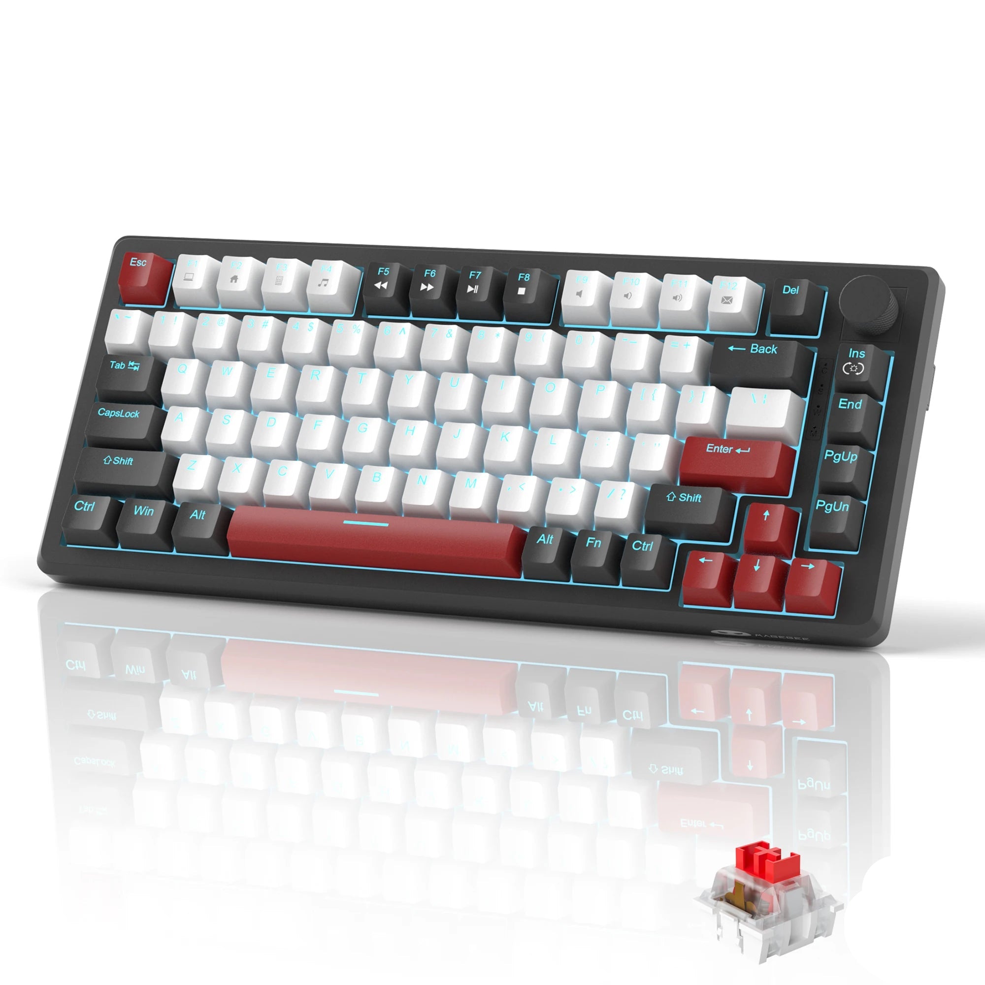 | Design | Compact 75% layout, ergonomic stepped keycaps, black & white scheme with 16 red DIY keycaps |
