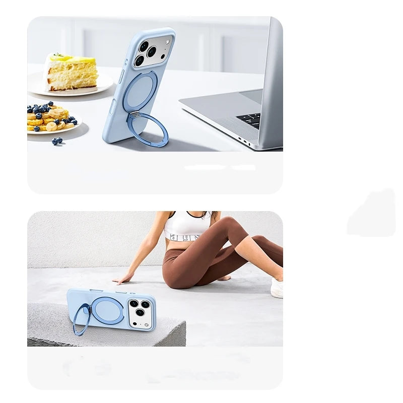 Matte Liquid Silicone Magnetic Case with Rotating Ring Holder for iPhone 17 Series