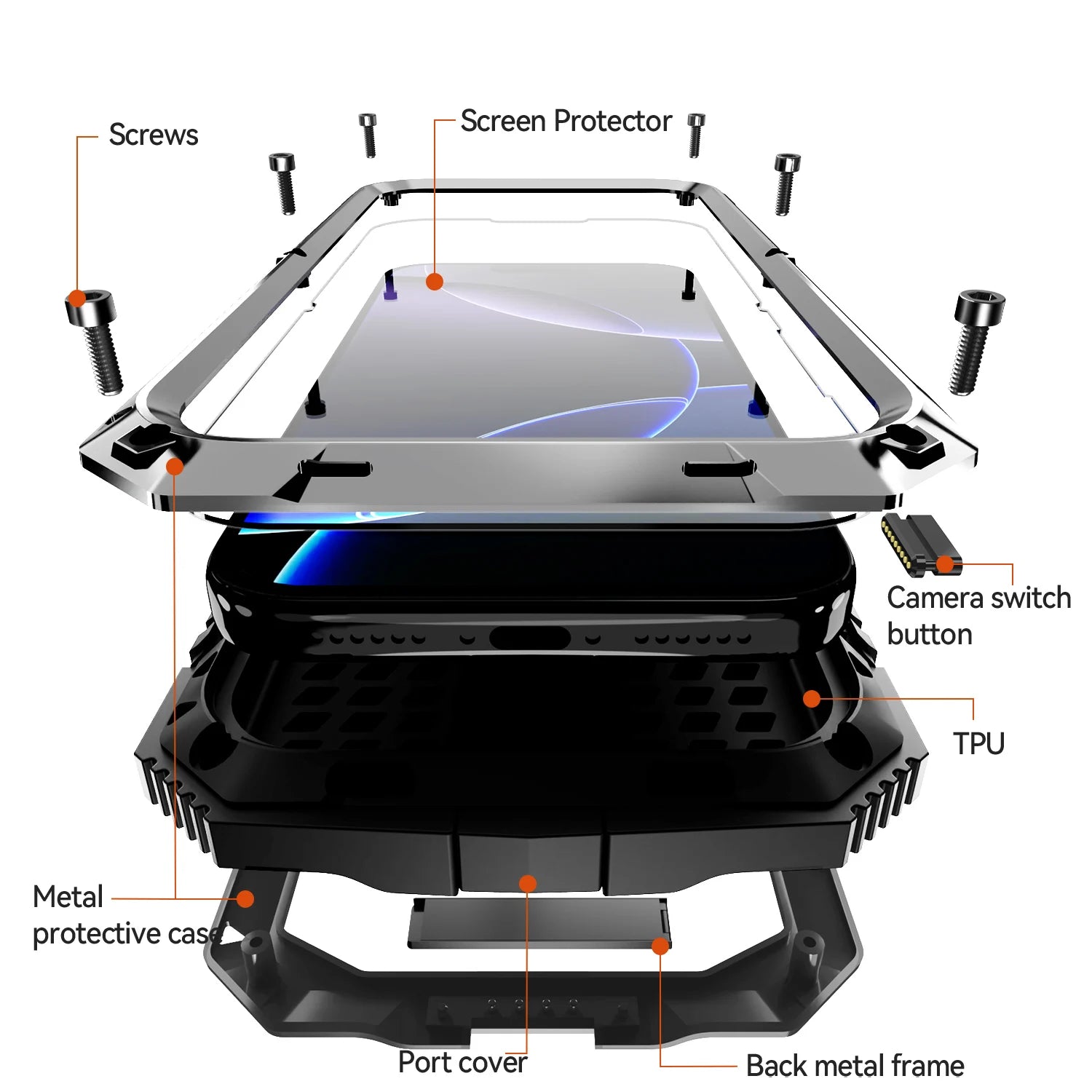 Military Grade 360 Protective Metal Case with Built-in Screen for iPhone 17 Series