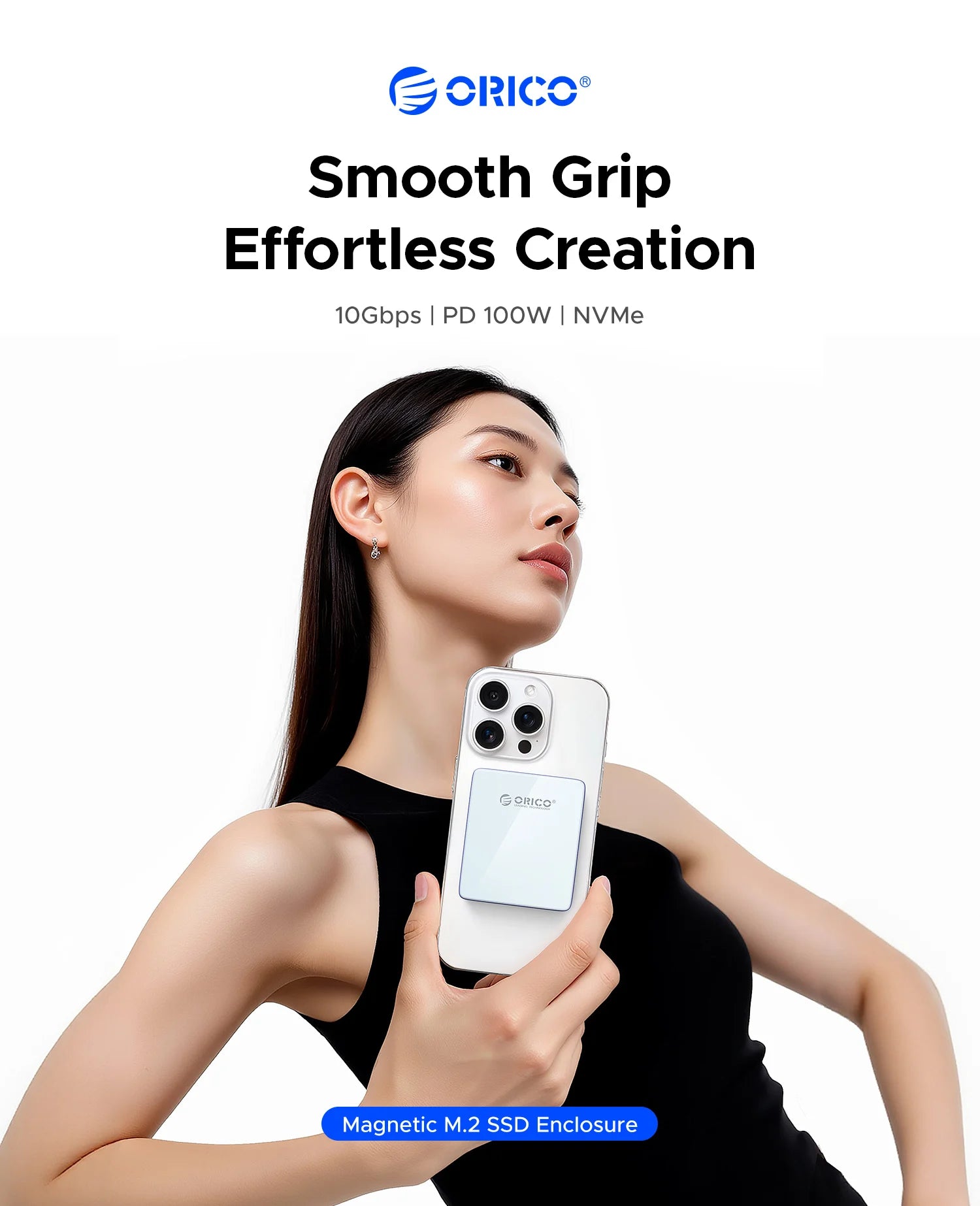 The ORICO AP42P Magnetic NVMe SSD Enclosure delivers fast, reliable performance for professionals handling large files or 4K video projects. Its compact design and magnetic attachment system make it easy to use and transport while providing high-speed data transfer and PD 100W charging.