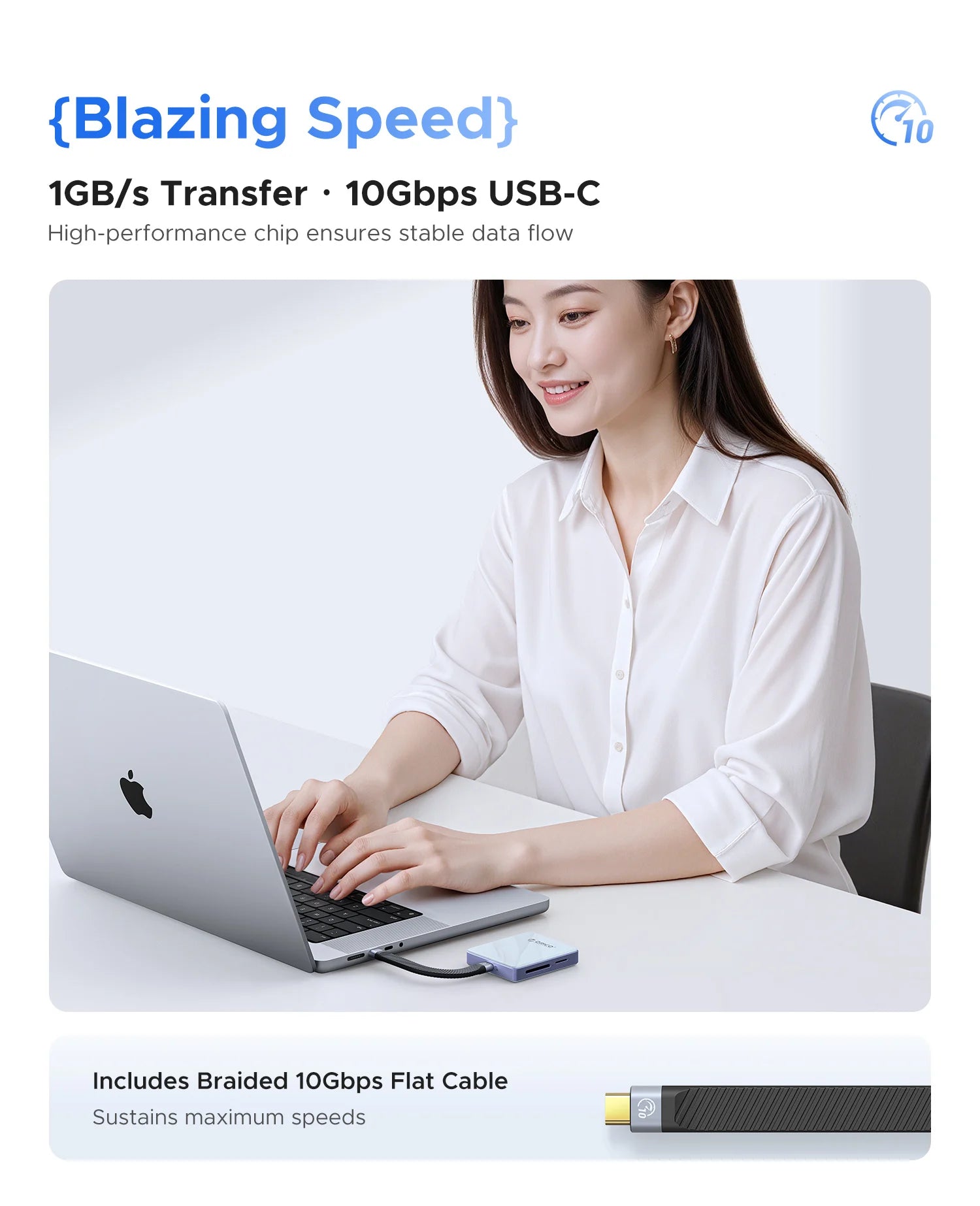 - PD Fast Charging: Supports PD 100W charging to power devices while transferring data efficiently.