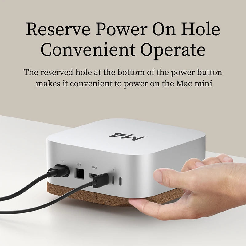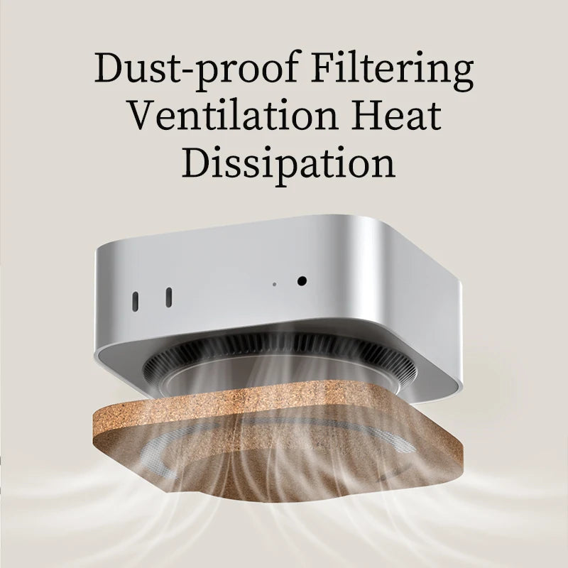 Enhance your Mac mini M4 or M4 Pro setup with this premium cork desktop stand that keeps your device cool and protected from dust. Its breathable design improves airflow while the built-in filter safeguards your Mac from debris, ensuring reliable performance.
