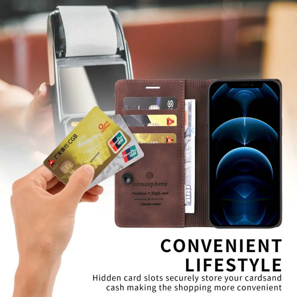 Made from premium PU leather, this wallet case offers a smooth, luxurious texture while ensuring reliable protection. The design wraps your device in a soft yet sturdy layer, giving confidence in daily use.
