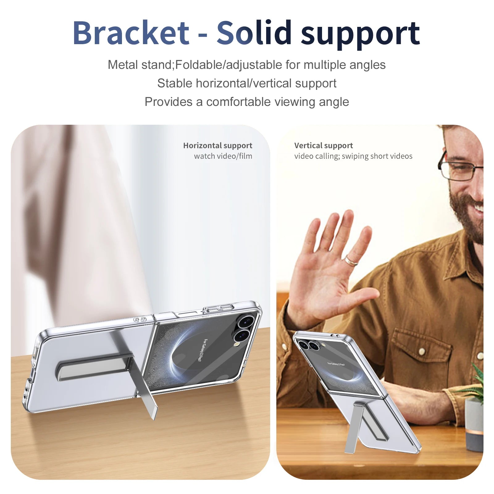 Keep your Samsung Galaxy Z Flip 7 fully protected with this comprehensive case featuring a built-in screen protector and glass lens film. Designed to guard against scratches, drops, and impacts, it also includes a sturdy bracket for hands-free use. Enjoy complete defense and convenience in one sleek, durable package.