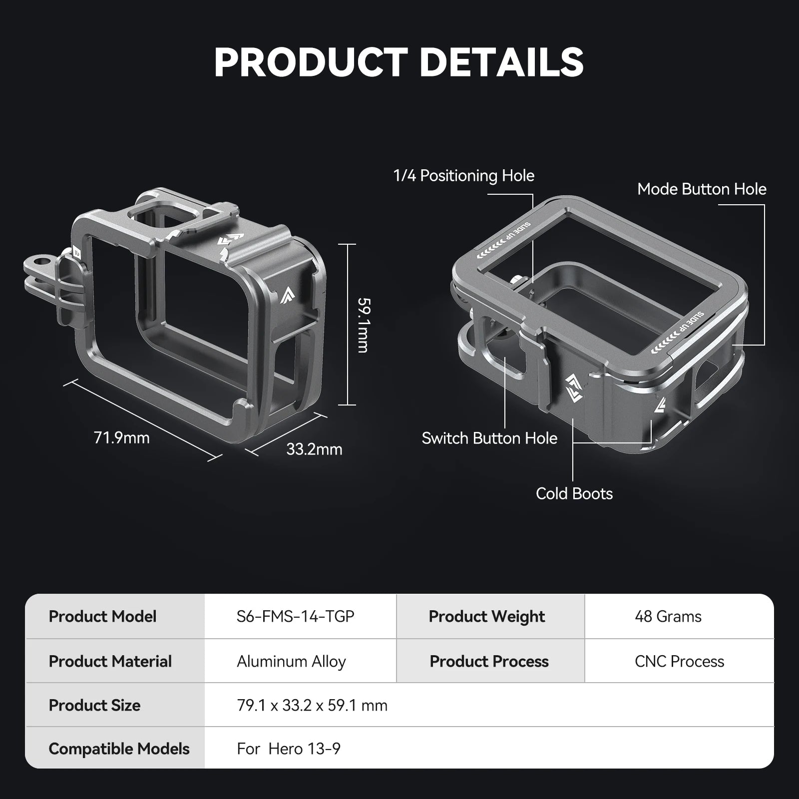 Upgrade your GoPro Hero action camera with the TELESIN Aluminium Alloy Frame Case. Its durable construction and lightweight design provide the perfect balance of protection and portability. Capture your adventures with confidence and take your footage to the next level.