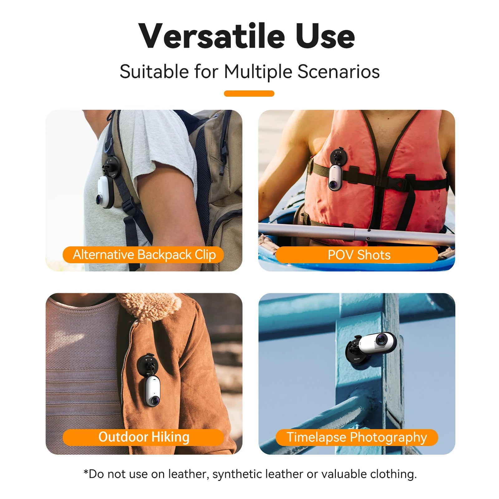 Easily attach your Insta360 Go3/Go3s to your backpack with the TELESIN Fabric Backpack Mount. Perfect for capturing hands-free footage without the need for additional equipment. Stay on the move and never miss a moment with this convenient mount.